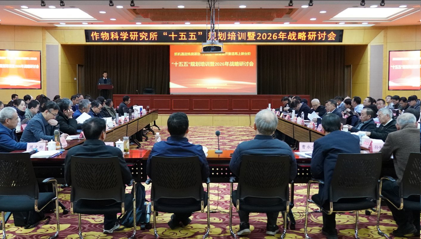 作科所召开2026年度战略研讨会1月13日,中国农业科学院作物科学研究所“十五五”规划培训暨2026年战略研讨会在京召开,会议以“抓机遇迎挑战谋划“十五五”稳盘面开赛道再上新台阶”为主题,旨在深入学习贯彻党的二十届四中全会精神,凝聚...2026.01.16
