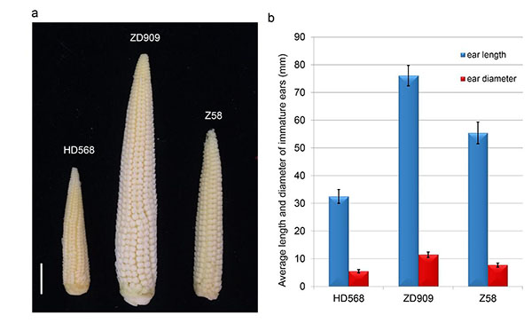 Heterosis refers to the phenomenon in which hybrid progeny show superior performance relative to their parents. Early maize ear development shows strong heterosis in ear architecture traits and greatly afects grain yield. To explore the underlying molecular mechanisms, genome-wide proteomics of immature ears of maize hybrid ZD909 and its parents were analyzed using tandem mass tag (TMT) technology. A total of 9,713 proteins were identifed in all three genotypes. Among them, 3,752 (38.6%) proteins were diferentially expressed between ZD909 and its parents. Multiple modes of protein action were discovered in the hybrid, while dominance expression patterns accounted for 63.6% of the total diferentially expressed proteins (DEPs). Protein pathway enrichment analysis revealed that high parent dominance proteins mainly participated in carbon metabolism and nitrogen assimilation processes. Our results suggested that the dominant expression of favorable alleles related to C/N metabolism in the hybrid may be essential for ZD909 ear growth and heterosis formation. Integrated analysis of proteomic and quantitative trait locus (QTL) data further support our DEP identifcation and provide useful information for the discovery of genes associated with ear development. Our study provides comprehensive insight into the molecular mechanisms underlying heterosis in immature maize ears from a proteomic perspective