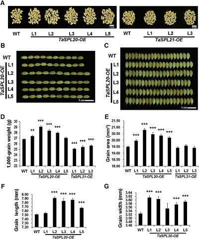 Maintaining high and stable yields has become an increasing challenge in wheat breeding due to climate change. Although Squamosa-promoter binding protein (SBP)-box genes have important roles in plant development, very little is known about the actual biological functions of wheat SBP-box family members. Here, we dissect the functional conservation, divergence, and exploitation of homoeologs of two paralogous TaSPL wheat loci during domestication and breeding. TaSPL20 and TaSPL21 were highly expressed in the lemma and palea. Ectopic expressions of TaSPL20/21 in rice exhibited similar functions in terms of promoting panicle branching but had different functions during seed development. We characterized all six TaSPL20/21 genes located across the three homoeologous (A, B, and D) genomes. According to the functional analysis of naturally occurring variants in 20 environments, four favorable haplotypes were identified. Together, they reduced plant height by up to 27.5%, and TaSPL21-6D-HapⅡ increased 1000-grain weight by 9.73%. Our study suggests that TaSPL20 and TaSPL21 homoeologs underwent diversification in function with each evolving its own distinctive characteristics. During domestication and breeding of wheat in China, favorable haplotypes of each set were selected and exploited to varying degrees due to their large effects on plant height and 1000-grain weight.