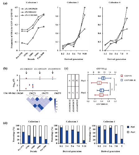 文章摘要:High yield and wide adaptation are principal targets of wheat breeding, but are hindered by limited knowledge on genetic basis of agronomic traits and abiotic stress tolerances. In this study, 277 wheat accessions were phenotyped across 30 environments with non-stress, drought-stressed, heat-stressed and drought-heat-stressed treatments, and were subjected to genome-wide association study using 395,681 SNPs. We detected 295 associated loci including consistent loci for agronomic traits across different treatments and eurytopic loci for multiple abiotic stress tolerances. A total of 22 loci overlapped with QTL identified by biparental QTL mapping. Six loci were simultaneously associated with agronomic traits and abiotic stress tolerance, four of which fell within selective sweep regions. Selection in Chinese wheat has increased the frequency of superior marker alleles controlling yield-related traits in the four loci during past decades, which conversely diminished favorable genetic variation controlling abiotic stress tolerance in the same loci; two promising candidate paralogous genes colocalized with such loci, thereby providing potential targets for studying the molecular mechanism of stress tolerance-productivity trade-off. These results uncovering promising alleles controlling agronomic traits and/or multiple abiotic stress tolerances, providing insights into heritable covariation between yield and abiotic stress tolerance, will accelerate future efforts for wheat improvement.