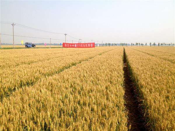 在高碑店市方官镇方官村种植的1000亩中麦175,在浇冬水和只浇1次春水的情况下,亩穗数达50.7万,穗粒数约30.7粒,按常年千粒重41克计,预计亩产可达542.4公斤,同时倒伏风险小。在高碑店农民协会的组织下,通过优良品种和栽培、植保等技术的有效集成,实现了小麦高产高效生产。