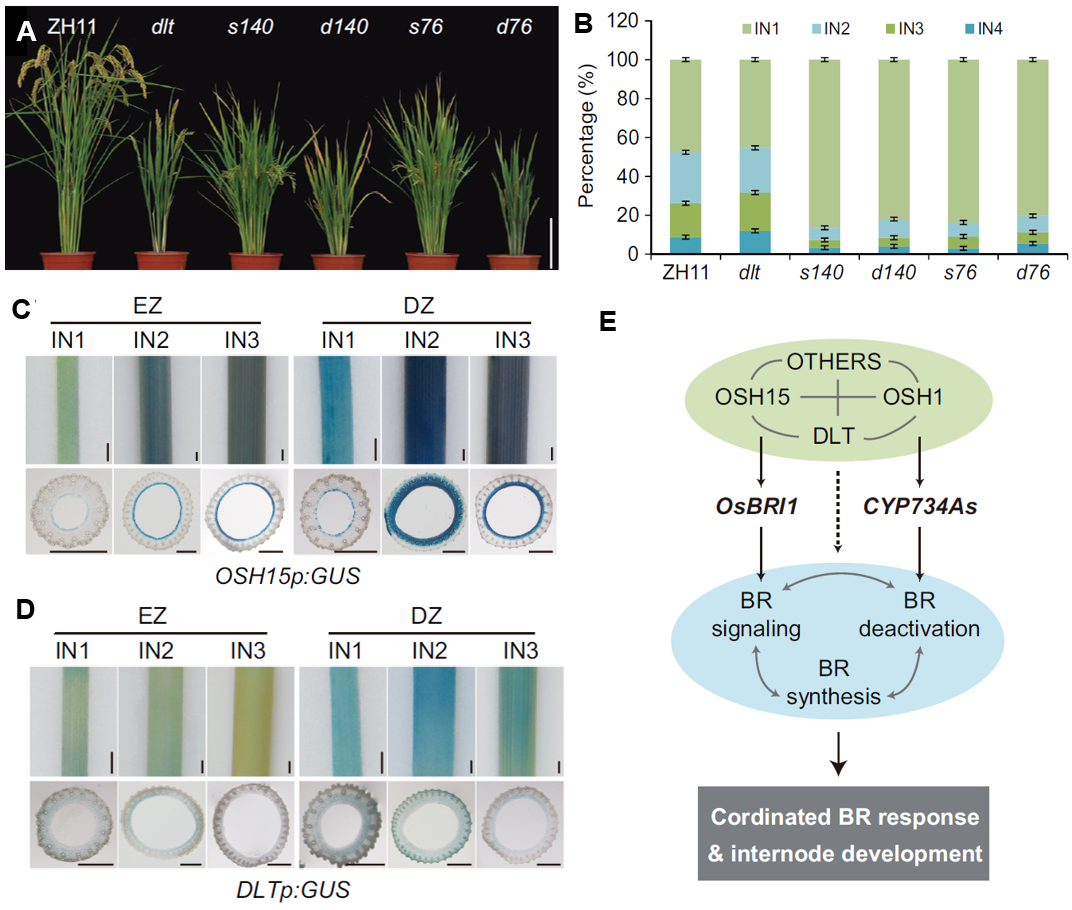 DLT和OSH15精细调控BR信号和代谢协调水稻不同茎节差异伸长
