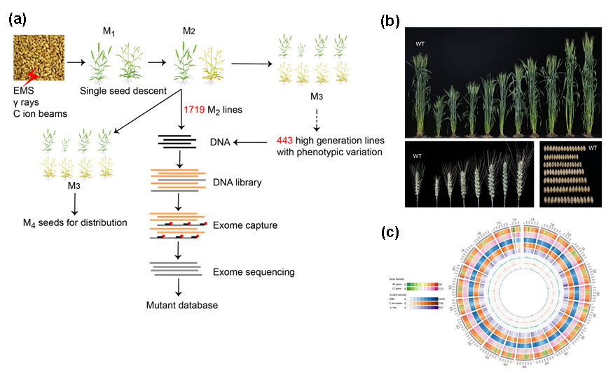 中国农业科学院作物科学研究所小麦育种新技术及应用创新团队综合利用多种诱变方式,历经10余年创制了覆盖株型、叶型、穗型、粒型、根系等全生育期不同性状的大容量呈梯度的小麦表型突变体库,并构建了以六倍体小麦骨干亲本京411为背景的全外显子大容量突变体库,为小麦功能基因挖掘与新品种培育提供了重要材料基础。7月4日,相关研究成果发表在《植物生物技术(Plant Biotechnology Journal)》上。