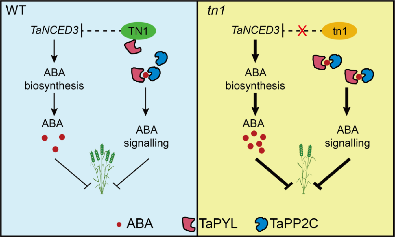 2月14日,中国农业科学院作物科学研究所小麦基因资源发掘与利用创新团队克隆了小麦分蘖调控新基因TN1,并揭示了其通过影响脱落酸(ABA)合成及信号转导路径调控小麦分蘖的分子机制,为小麦株型改良提供了重要基因资源与理论支撑。相关研究成果在线发表于《自然通讯(Nature Communications)》上。