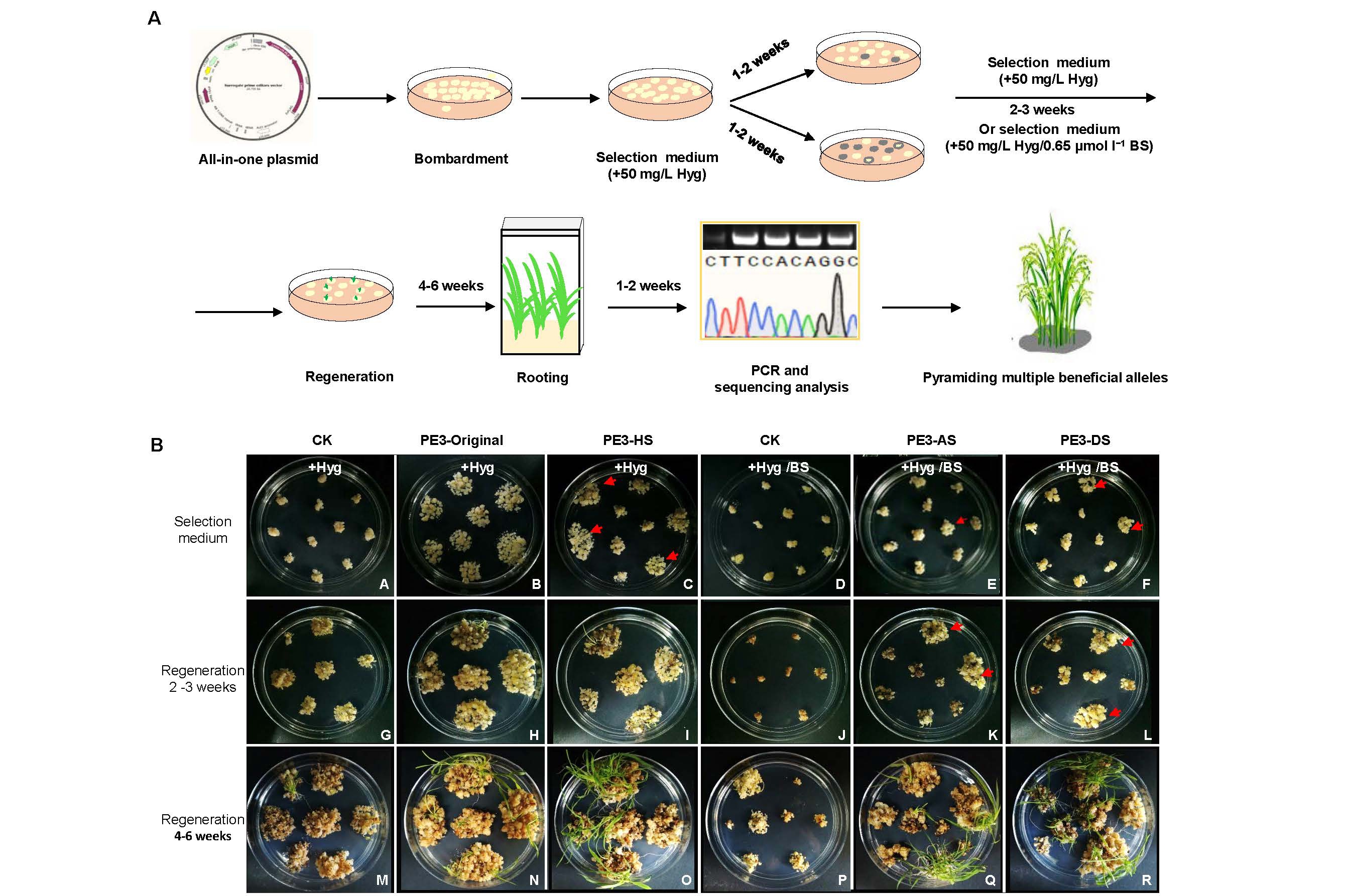 近日,中国农业科学院作物科学研究所作物精准育种技术创新团队,成功研发出高效代理引导基因编辑器PE3-HS、PE3-AS和PE3-DS,并率先在水稻中实现多个基因同时精准编辑,进一步拓展了引导编辑系统在农作物多基因聚合育种中的应用。5月25日,相关成果在线发表在《分子植物(Molecular Plant)》杂志上。