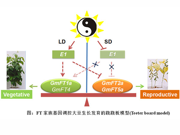 作科所提出FT家族基因调控大豆发育方向的跷跷板模型