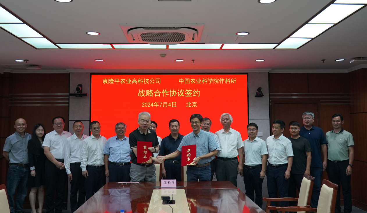 7月4日,中国农业科学院作物科学研究所与袁隆平农业高科技股份有限公司(以下简称“隆平高科”)在北京举行全面战略合作签约仪式,作科所所长周文彬与中信农业总经理、隆平高科董事长刘志勇分别代表双方签约,本次签约,双方将在前期合作研究基础上,围绕农业高质量绿色发展、种业振兴战略要求,在科技创新合作、科技成果转化与推广、研究生联合培养、国际交流合作、科研项目联合申报等方面开展战略合作。中国农科院副院长、党组成员叶玉江,中国工程院院士万建民,作科所党委书记刘录祥、副所长王文生等见证了签约活动。