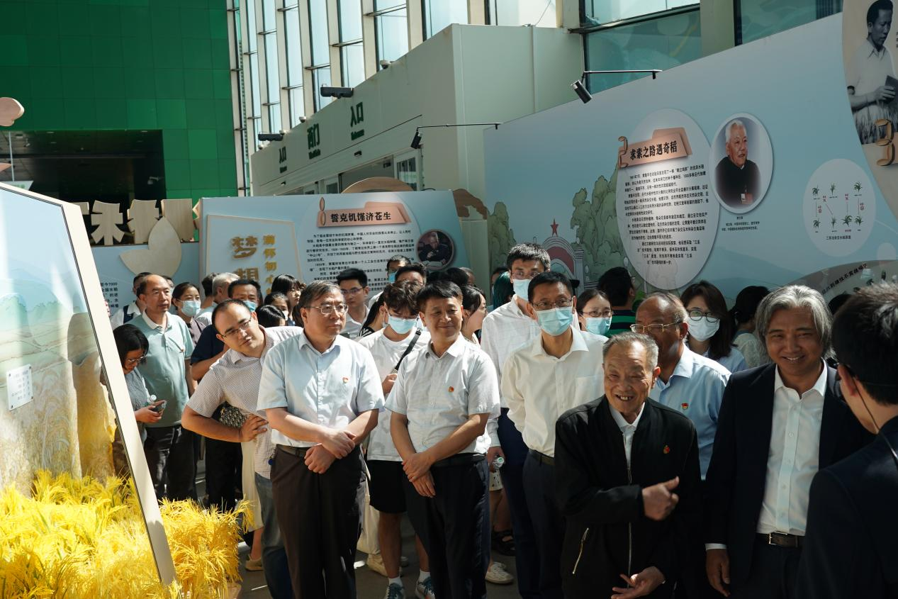 中国科协党组副书记、专职副主席、书记处书记束为出席开幕式并致辞,中国科学院院士谢华安、中国美术馆馆长吴为山,农业农村部科技教育司二级巡视员窦鹏辉、杂交水稻育种专家李必湖等出席开幕式,中国科技馆馆长殷皓主持开幕式。谢华安院士亲述杂交水稻攻关路上的动人事迹,勉励后辈为夯实国家粮食安全根基矢志奋斗,话语铿锵,令人振奋。开幕式结束后,党员们共同参观了“梦想缘起”“齐心追梦”“接续追梦”“共同梦想”等展区,通过互动展品、图文影像、文物陈列以及艺术作品、艺术化场景等形式,沉浸式感受“禾下追梦”的艰辛历程,深刻感受老一辈农业科学家心系苍生、艰苦奋斗的崇高精神。