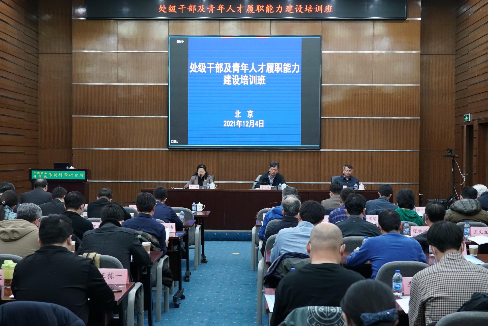 作科所举办处级干部及青年人才履职能力建设培训班12月4日-5日,中国农业科学院作物科学研究所举办了“加强人才队伍建设,促进种业振兴发展”为主题的处级干部及青年人才履职能力建设培训班。此次培训班是贯彻落实2021年中央人才工作会议精神和院四次人才工作会议精神,进一步帮助优秀青年干部人才开阔眼界、思路和胸襟,提高履职能力、促进种业振兴发展的重要举措。中国农科院人事局副局长李巨光、所长钱前院士在开班仪式上致辞,党委书记范静、副所长刘录祥、党委副书记、纪委书记马秀勇、副所长马有志出席活动。我所处级干部、团队首席、执行首席、院所各类青年人才等100多人通过线上、线下方式参加了培训。