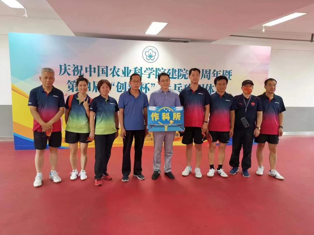 近日,在院乒乓球俱乐部举办的“庆祝中国农业科学院建院65周年暨第四届“创新杯”乒乓球团体赛”中,作科所参赛队员团结协作、奋勇拼搏,获得第三名的好成绩。院党组书记张合成、院党组成员、人事局局长陈华宁出席开幕式并为比赛开球。陈华宁参加闭幕式并为获奖代表队颁奖。