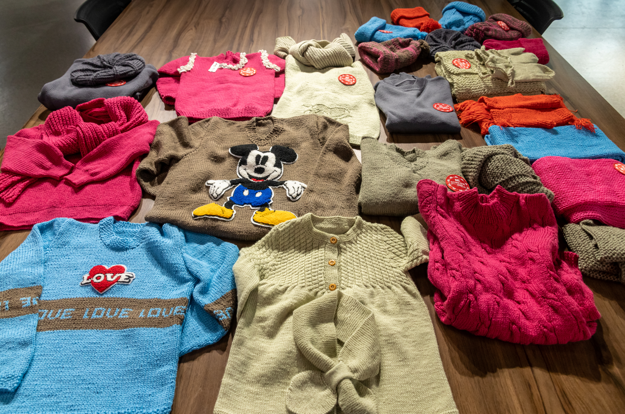 为了在严寒来临前将温暖送到边疆和灾区孩子们身边,女职工们秉承作科所优良的“传帮带”传统,巧手老职工手把手地悉心指导,年轻女职工认真地现学现织,大家积极参与,编织了毛衣11件、围巾8件、帽子8件、手套2副。每件衣物都精心设计、仔细包装,缝制上恒爱行动的标志,有的女职工还亲手写上祝福的卡片,凝聚了浓浓的爱心。