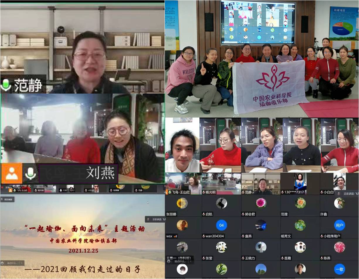 中国农科院瑜伽俱乐部举办2021年主题活动2021年12月25日,在中国农科院工会的支持下,作科所妇委会协同瑜伽俱乐部举办了“一起瑜伽,面向未来”视频瑜伽主题日活动。作科所党委书记、妇委会主任范静,院工会副主席刘燕出席活动并致辞。来自京内外近20个研究所的90余名瑜伽爱好者欢聚线上参加了活动。
