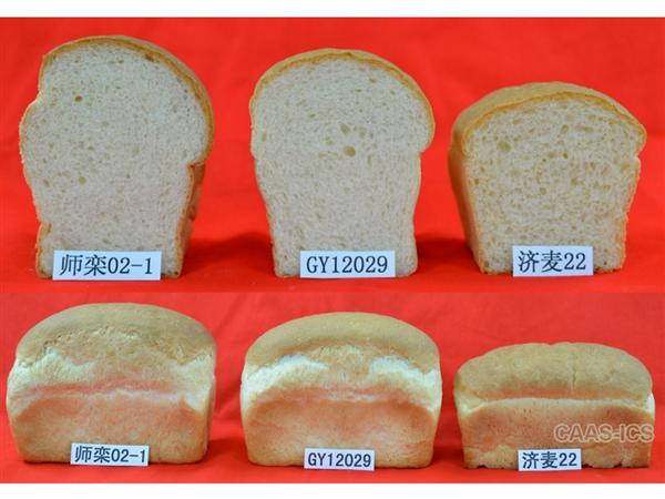 与会代表在石家庄市高邑县实地观摩了中麦29。该品种组合为济麦22/师栾02-1,有三大特点。一是品质优,籽粒硬质,面团稳定时间23.5分钟,面包体积890mL,面包评分94分,达到国家一级优质强筋麦标准;二是产量高,比优质对照品种师栾02-1增产5%左右,实现了优质与高产的良好结合;三是综合抗性好,中早熟,株高约75cm,抗倒伏能力强,中抗白粉和叶锈,抗寒性和穗型比师栾02-1显著改进。会议现场,大家品尝了用中麦29制做的面包,体积大、质地优、口感极佳,受到与会人员的一致称赞。