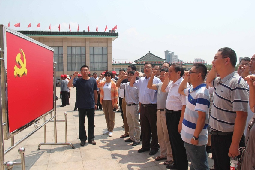 7月1日,在建党纪念日这一天,山西农大农学院党委书记席丛林带领学院党员干部与作科所分子中心党员、专家一起奔赴山西武乡,共同举行了参观八路军太行纪念馆活动,在党旗下重温入党誓词。抗战期间,八路军总部长期驻扎在太行山区,指挥八路军驰骋华北抗日战场,创造了惊天动地的伟业,为中华民族抗日战争的最后胜利作出了巨大贡献。在八路军抗战烽火中孕育和发展的伟大的太行精神,已成为中华民族的宝贵精神财富,习近平总书记指出“要结合新的实际与时俱进地大力弘扬太行精神”。此次学习太行精神,重温革命先烈们抛头颅、洒热血的英雄事迹,使我们每一位党员都经历了一次心灵涤荡,更加坚定了共产主义的信念。