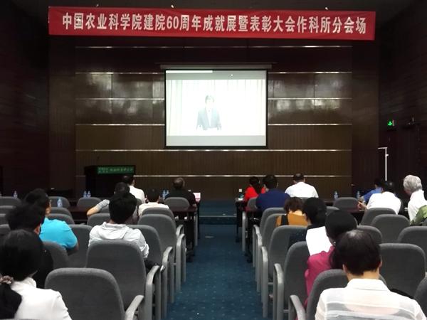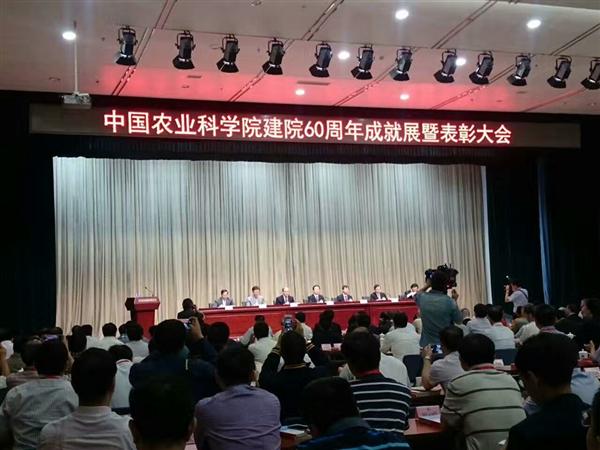 2017年5月26日上午,中国农业科学院建院60周年成就展暨表彰大会在中国农业科学院隆重召开。农业部部长韩长赋,农业部党组成员、中国农科院院长唐华俊等领导出席大会并为获奖代表颁奖。作科所作为主要完成单位的“国家农业种质资源库”等10项科技成果熠熠生辉,入选建院60周年重大科技成就。金善宝等12名院士、专家获得“卓越成就奖”,金善宝等18名同志获得“卓越奉献奖”,庄巧生等24名同志被授予“建院60周年纪念章”。