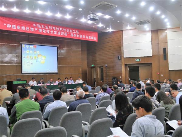 5月4日,由中国农业科学院作物科学研究所主持的中国农科院科技创新工程“种植业绿色增产增效技术集成创新”协同创新任务启动会在北京召开。中国农科院副院长王汉中、创新办主任文学、科技局副局长王述民、创新办李滋睿、作科所党委书记孙好勤、作科所副所长刘录祥等领导出席会议。来自承担任务的团队首席和专家共计100余人参加了会议。