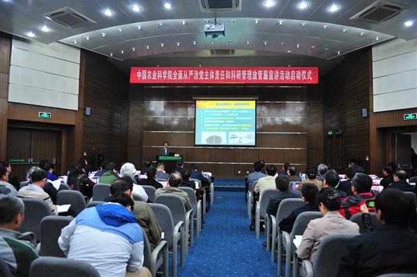 4月14日,中国农业科学院“全面从严治党主体责任和科研放管服”主题宣讲活动启动仪式暨首场宣讲会在作物科学研究所举行。农业部党组成员、中国农科院院长唐华俊带队进行宣讲。院党组书记陈萌山作动员讲话。中央纪委驻农业部纪检组副组长蔡晓出席会议并讲话。作科所领导班子成员、党支部书记、全体在职党员、科研骨干、职能部门共计300余人参加了宣讲启动会。会议由院纪检组组长李杰人主持。