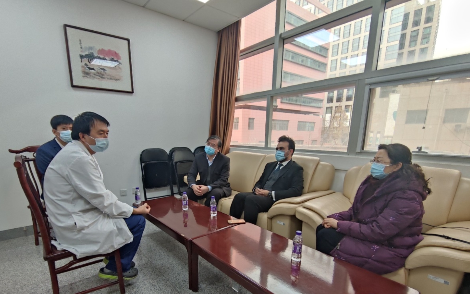 所领导和院、所相关部门对此高度重视。范静书记获知Ahsan博士发病当天即时询问,积极联系海淀医院院长协调会诊及后续转院事宜。人事处、科研处第一时间将病情上报院人事局、博管会和国合局。国合局急事急办,即刻通过微信与巴基斯坦驻华大使馆取得联系,并多次组织材料通报大使馆。12月8日上午,巴驻华使馆一等秘书Awais Zafar赴海淀医院探望,党委书记范静、副所长刘录祥、人事处处长邢丽丽和院国际合作局副处长张帅一同探望,海淀医院院长助理许猛子和主治医生耿学峰主任详细介绍了Ahsan的病情。Awais Zafar代表大使先生和全体外交官感谢研究所对Irshad博士的关心照顾。