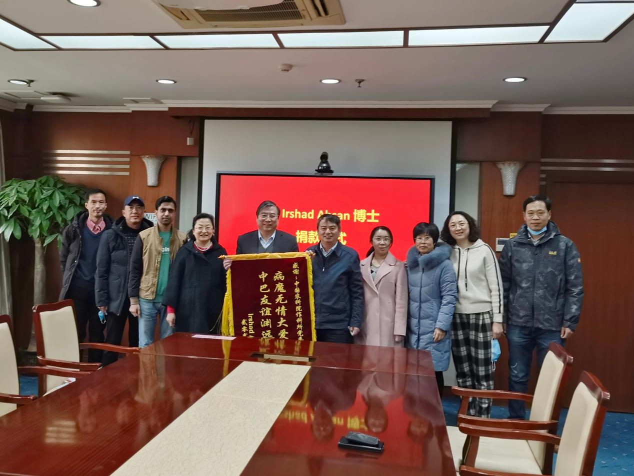 在捐款仪式上,Ahsan博士向研究所送上锦旗致谢并发表深情感言。“病魔无情大爱无疆,愿中巴友谊源远流长”,他真诚感谢研究所的关心、支持和帮助,使他在最艰难的时刻感受到家人般的温暖,感受到深厚的中巴情谊。他会按照所领导的勉励,坚定信心、勇往直前,不辜负大家的关心,努力去实现自己的理想,未来不断取得更好的成绩。