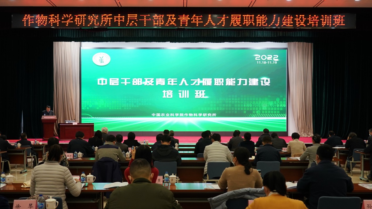 作科所组织中层干部及青年人才履职能力建设培训班11月18-19日,中国农业科学院作物科学研究所举办了“学习二十大精神,加快种业科技创新”为主题的中层干部及青年人才履职能力建设培训班。此次培训,是贯彻落实党的二十大精神和院第五次人才工作会议精神,帮助青年干部人才进一步提升思想政治水平和履职创新能力的系列举措之一。全国人大农业与农村委员会主任委员陈锡文,农业农村部种植业司副司长吕修涛、科技发展中心副主任陈彦宾,中国常驻世界贸易组织农业参赞贡锡锋,中国农业大学农学院院长倪中福等出席活动并授课,中国农科院人事局副局长季勇,作科所所长钱前,党委书记、副所长刘录祥,党委副书记、纪委书记赵长军,副所长马有志等领导专家出席活动。