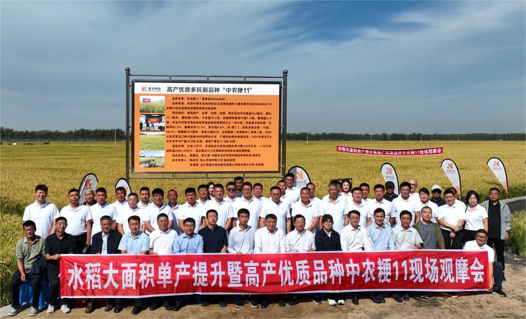 9月9日,中国农业科学院作物科学研究所与北大荒垦丰种业联合主办的“水稻大面积单产提升暨高产优质新品种‘中农粳11’现场观摩会”在佳木斯桦川县举行。会议旨在推进科企深度对话,共鉴水稻科技创新成果,探讨种业支撑单产路径。中国农科院副院长、党组成员叶玉江,全国农技中心区试处高级农艺师张笑晴,北大荒农垦集团党委委员、副总经理姜庆海,作科所副所长王文生,黑龙江省农业农村厅种业处副处长孟令辉出席观摩会。会议由作科所成果转化与基地处处长肖永贵主持。