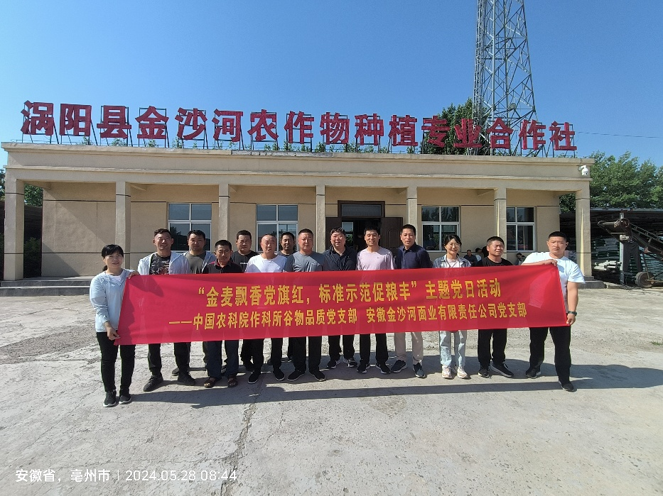 近日,作科所谷物品质党支部与安徽金沙河面业有限责任公司党支部开展了“金麦飘香党旗红,标准示范促粮丰”联学共建活动,组织党员代表和技术骨干参观了涡阳县辉山烈士陵园,并开展了座谈交流。