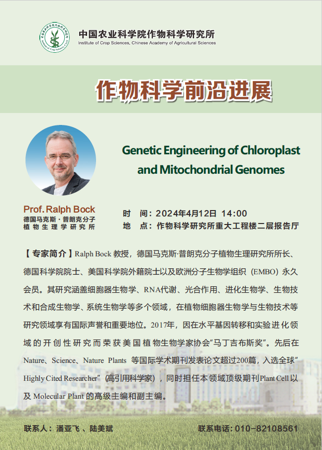 【作物科学前沿进展】Ralph Bock,Genetic Engineering of Chloroplast and Mitochondrial Genomes