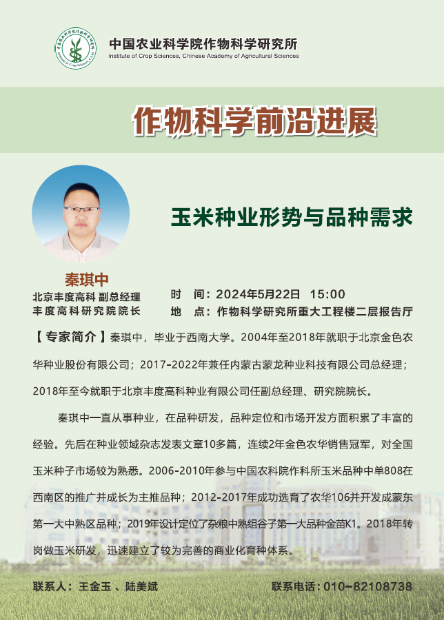 【作物科学前沿进展】秦琪中,玉米种业形势与品种需求