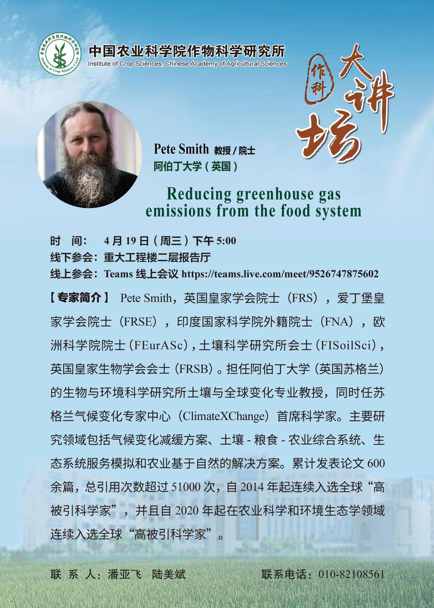 【作科大讲坛】Pete Smith,Reducing greenhouse gas emissions from the food system