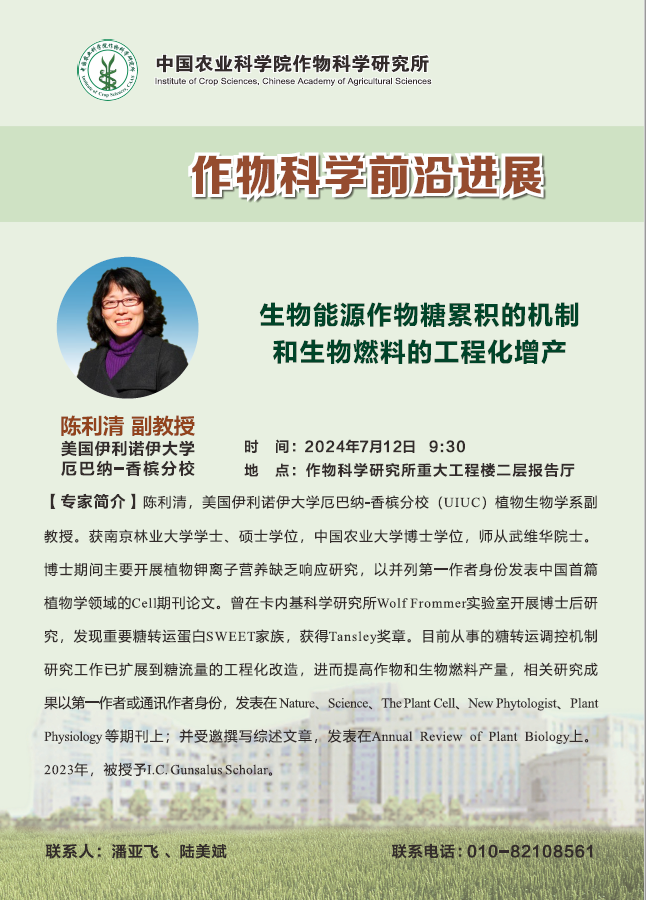 【作物科学前沿进展】陈利清 副教授,生物能源作物糖累积的机制和生物燃料的工程化增产