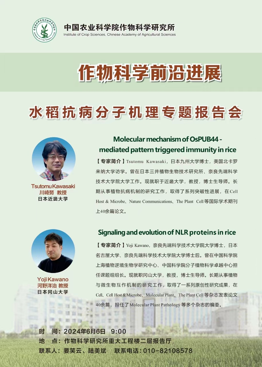 【作物科学前沿进展】Tsutomu Kawasaki,Yoji Kawano,水稻抗病分子机理专题报告会