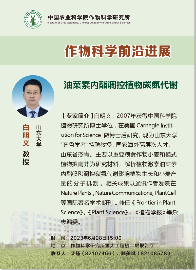 【作物科学前沿进展】白明义 教授,油菜素内酯调控植物碳氮代谢