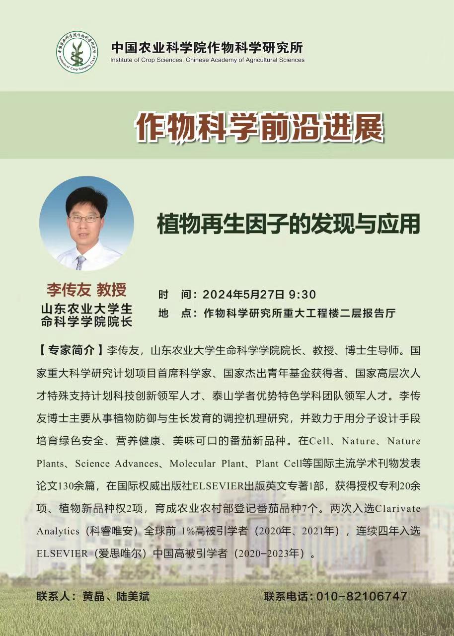 【作物科学前沿进展】李传友 教授,植物再生因子的发现与应用