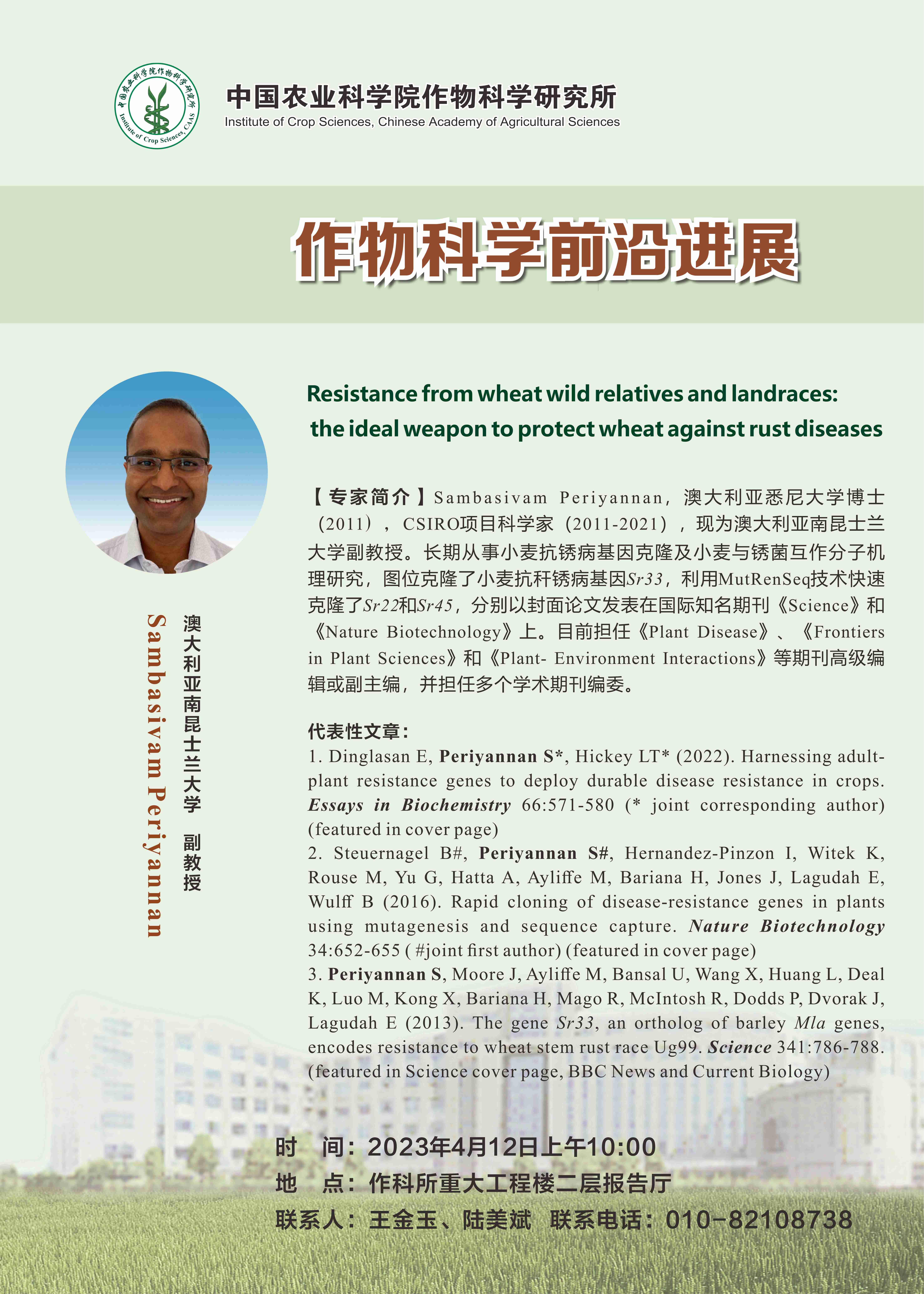 【作物科学前沿进展】Sambasivam Periyannan,Resistance from wheat wild relatives and landraces: the ideal weapon to protect wheat against rust diseases
