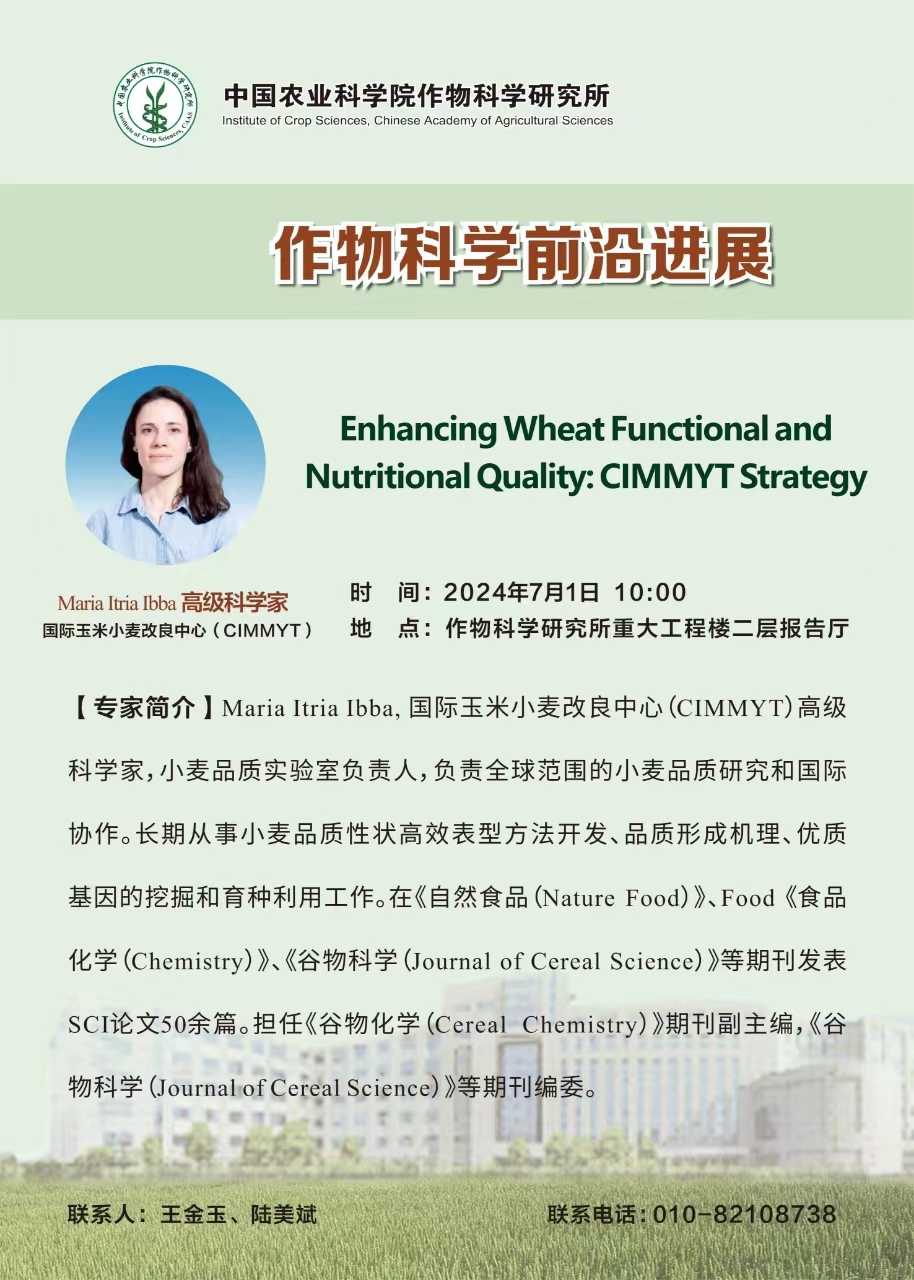 【作物科学前沿进展】Maria Itia lbba ,Enhancing Wheat Functional and Nutritional Quality: ClMMYT Strategy