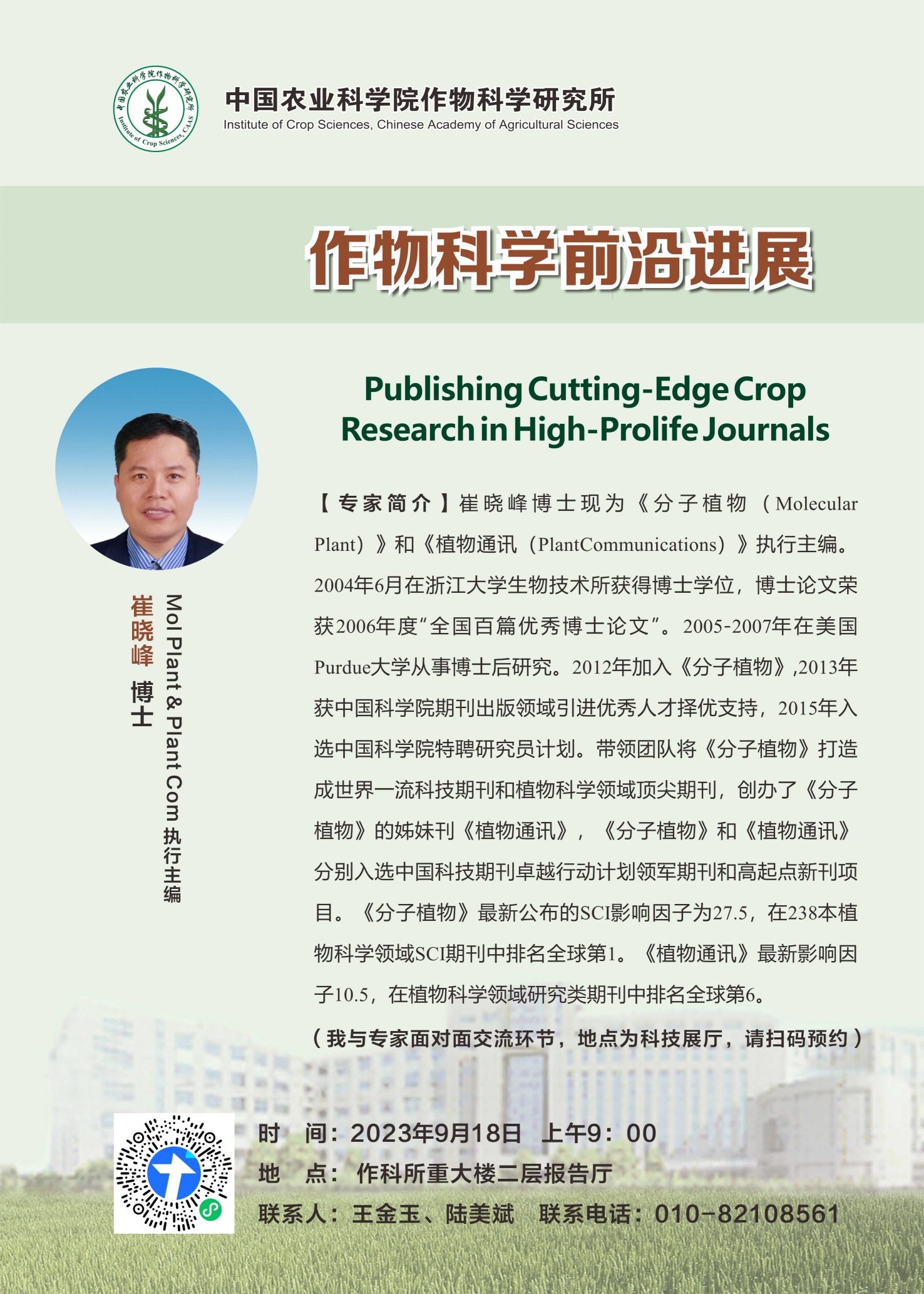 【作物科学前沿进展】崔晓峰,Publishing Cutting-Edge Crop Research in High-Prolife Journals
