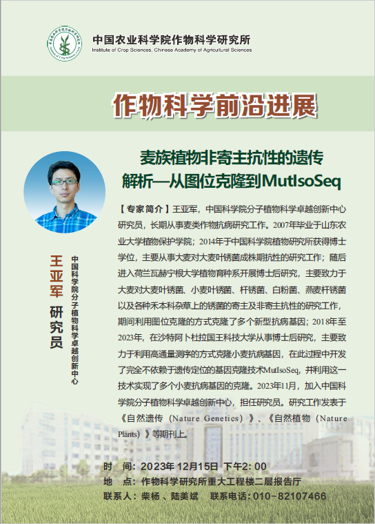 【作物科学前沿进展】王亚军 研究员,麦族植物非寄主抗性的遗传解析——从图位克隆到MutIsoSeq