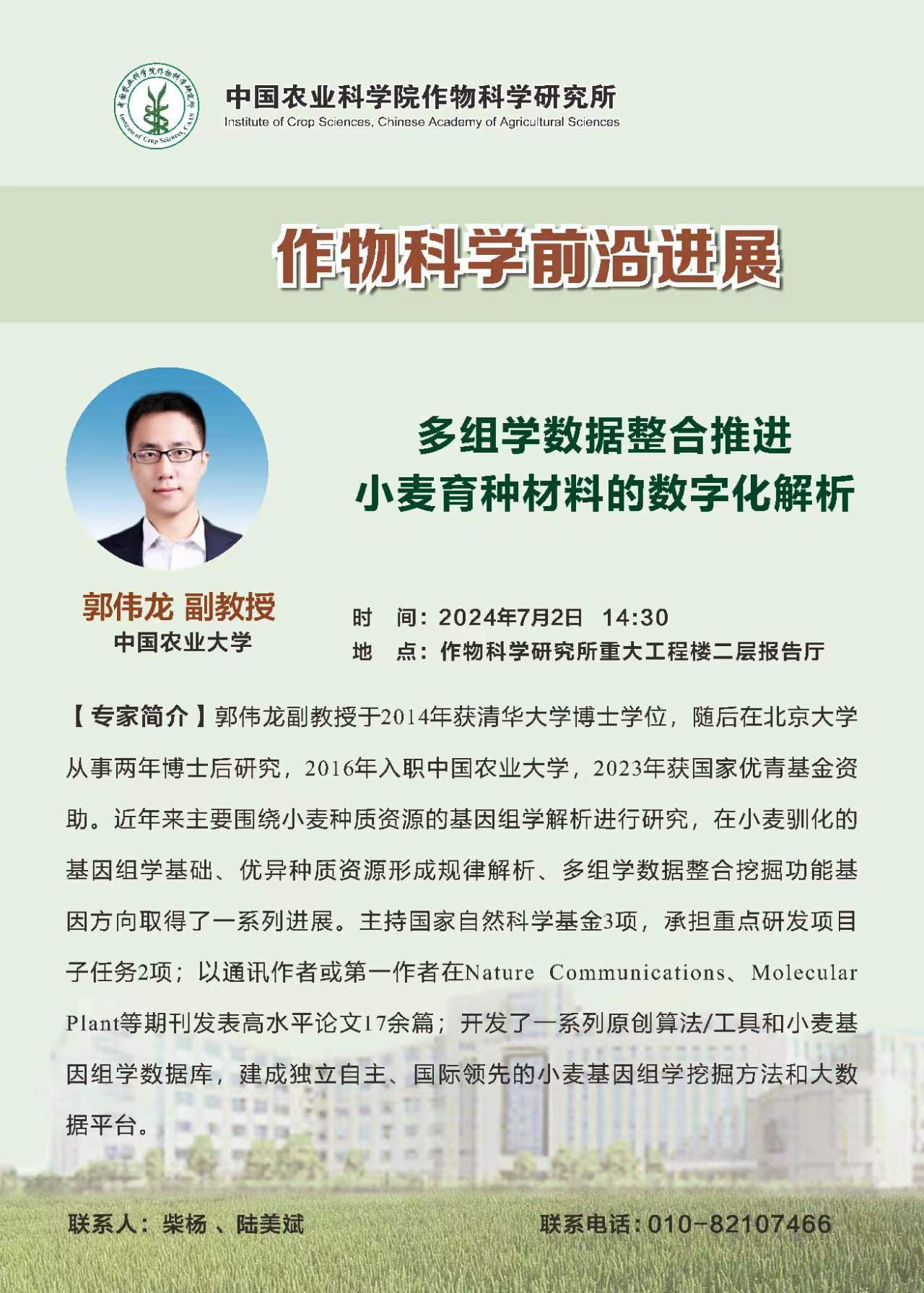 【作物科学前沿进展】郭伟龙 副教授,多组学数据整合推进小麦育种材料的数字化解析