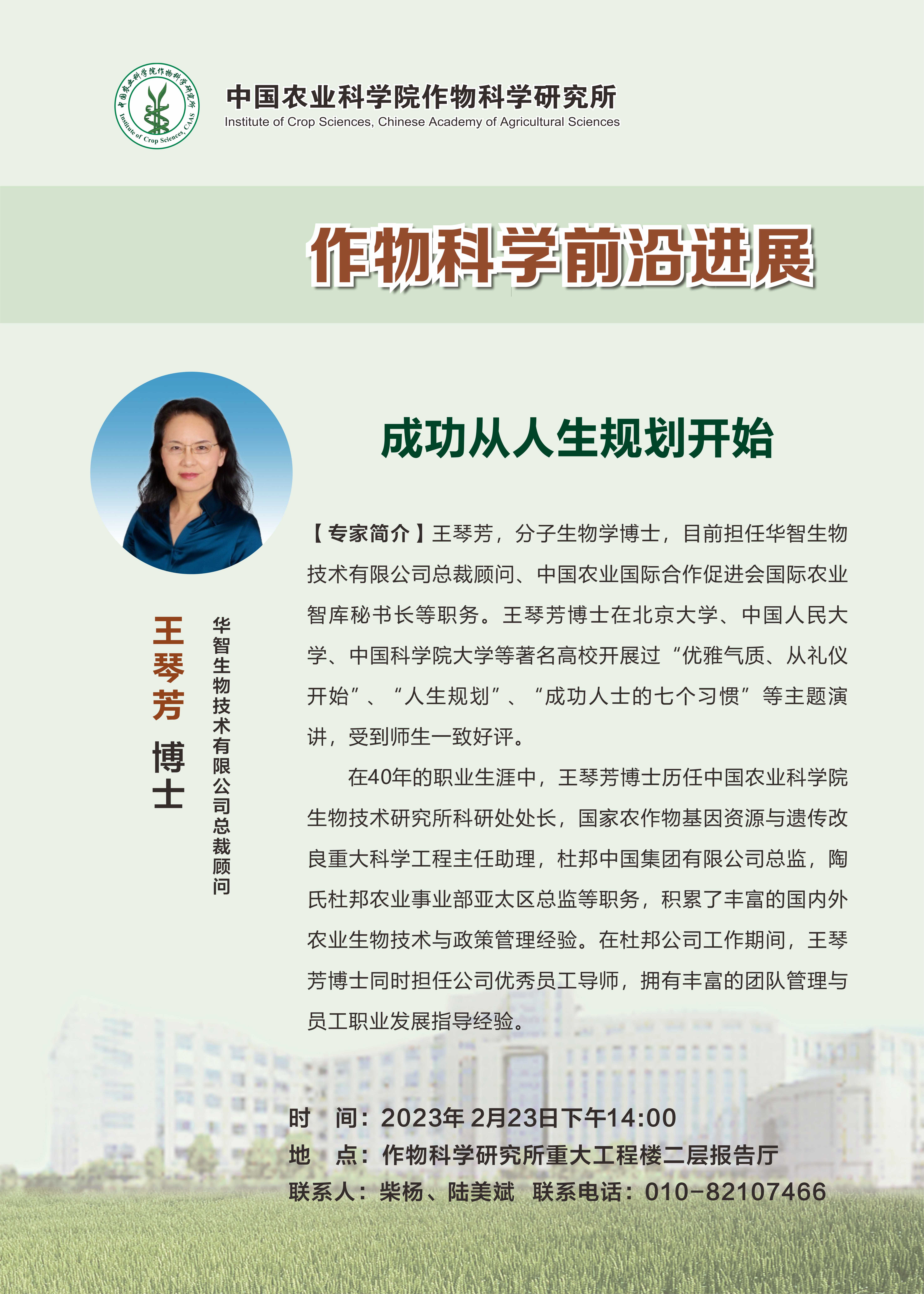 【作物科学前沿进展】王琴芳 博士 成功从人生规划开始