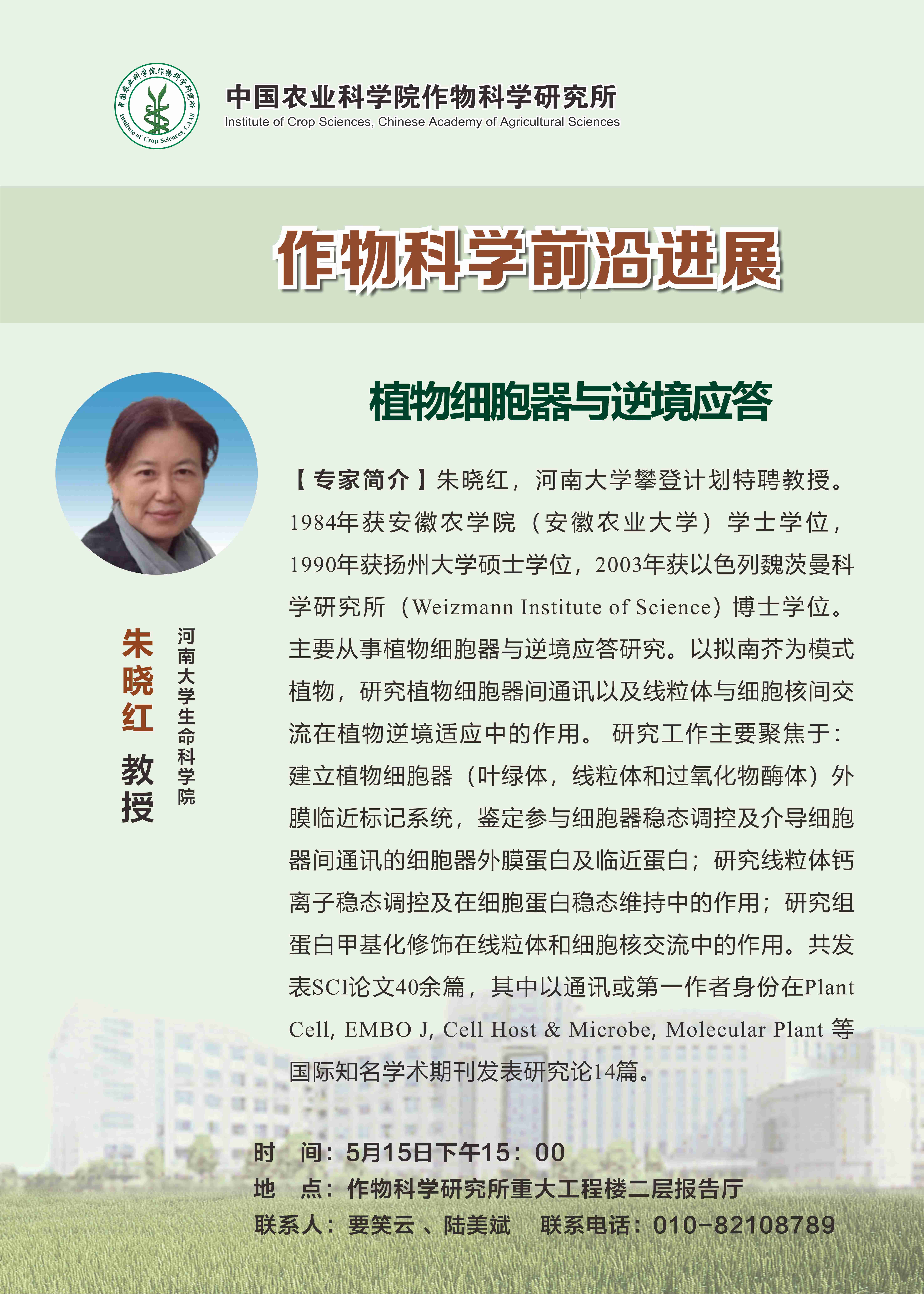 【作物科学前沿进展】朱晓红 教授 植物细胞器与逆境应答