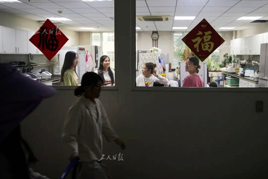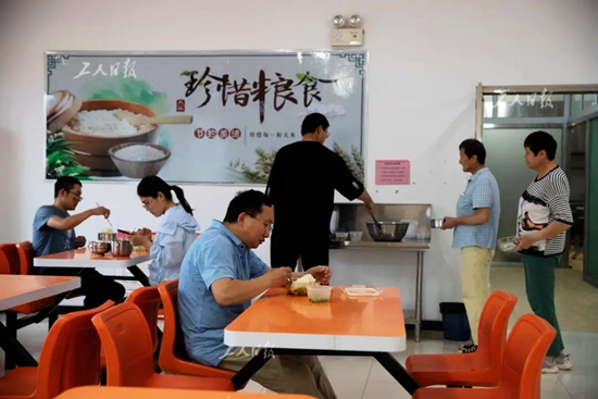 6月15日,农科院作科所顺义基地的食堂内,科研人员正在吃晚饭。与城里相比,这里的条件相对艰苦,饭菜也比较简单。