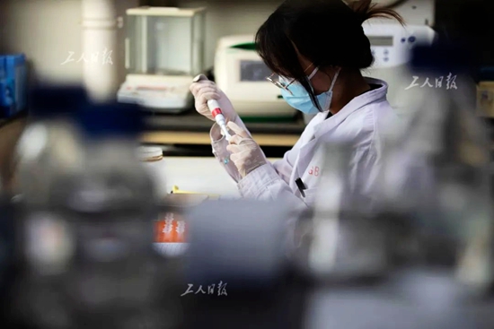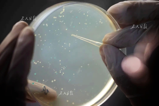 科研人员正在挑取阳性菌落,用于后续的基因测序。