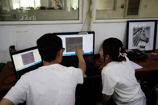 6月17日,农科院作科所的实验室内,李龙博士(左一)正和学生分析小麦根系构型。