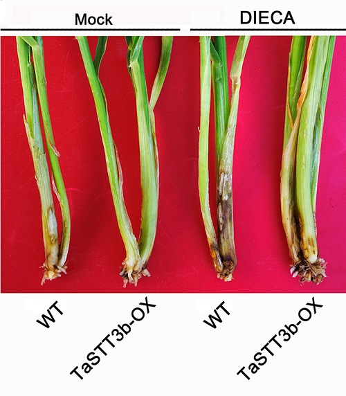 研究发现,一个位于小麦2B染色体上的寡糖基转移酶催化亚基编码基因TaSTT3b-2B受纹枯菌诱导表达。利用生物技术手段使该基因沉默显著降低了小麦对纹枯病的抗性,而过表达该基因可以显著提高抗病性。