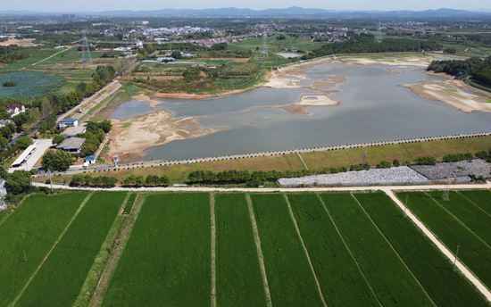 8月22日,南京市溧水区一处高标准农田旁边,用来灌溉的小水库中的水量已经很少。新京报记者 周怀宗 摄