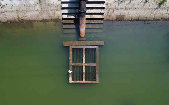 8月21日,江苏盱眙县洪湖村,抽水抗旱的水泵入水口。渠里调来的水,在高温下迅速蒸发。新京报记者 周怀宗 摄