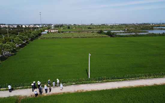 8月22日,中国农科院的专家们在南京江宁区一处高标准农田调研。新京报记者 周怀宗 摄