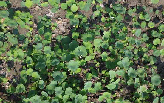 8月21日,江苏盱眙县洪泽湖,原本长在水中的荷花,湖底已露出土壤。新京报记者 周怀宗 摄