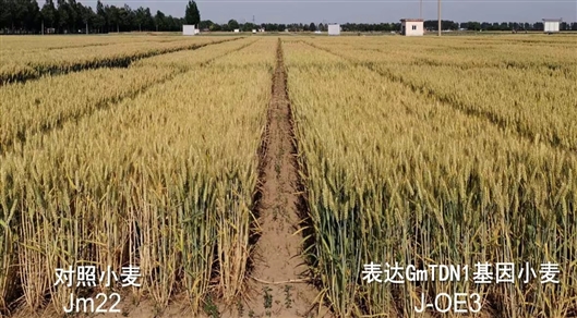 连续3年在3个不同地点进行的田间试验表明,导入GmTDN1基因的“石4185”和“济麦22”小麦在节水条件下和缺氮条件下产量分别提高13.0 %和24.5%。